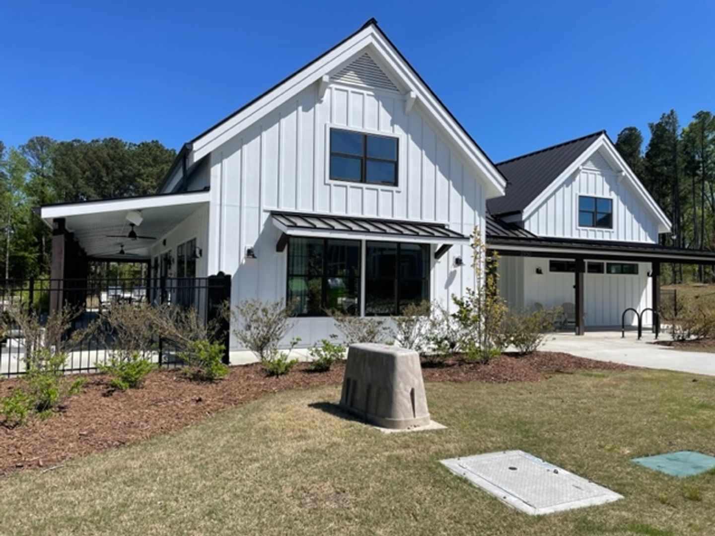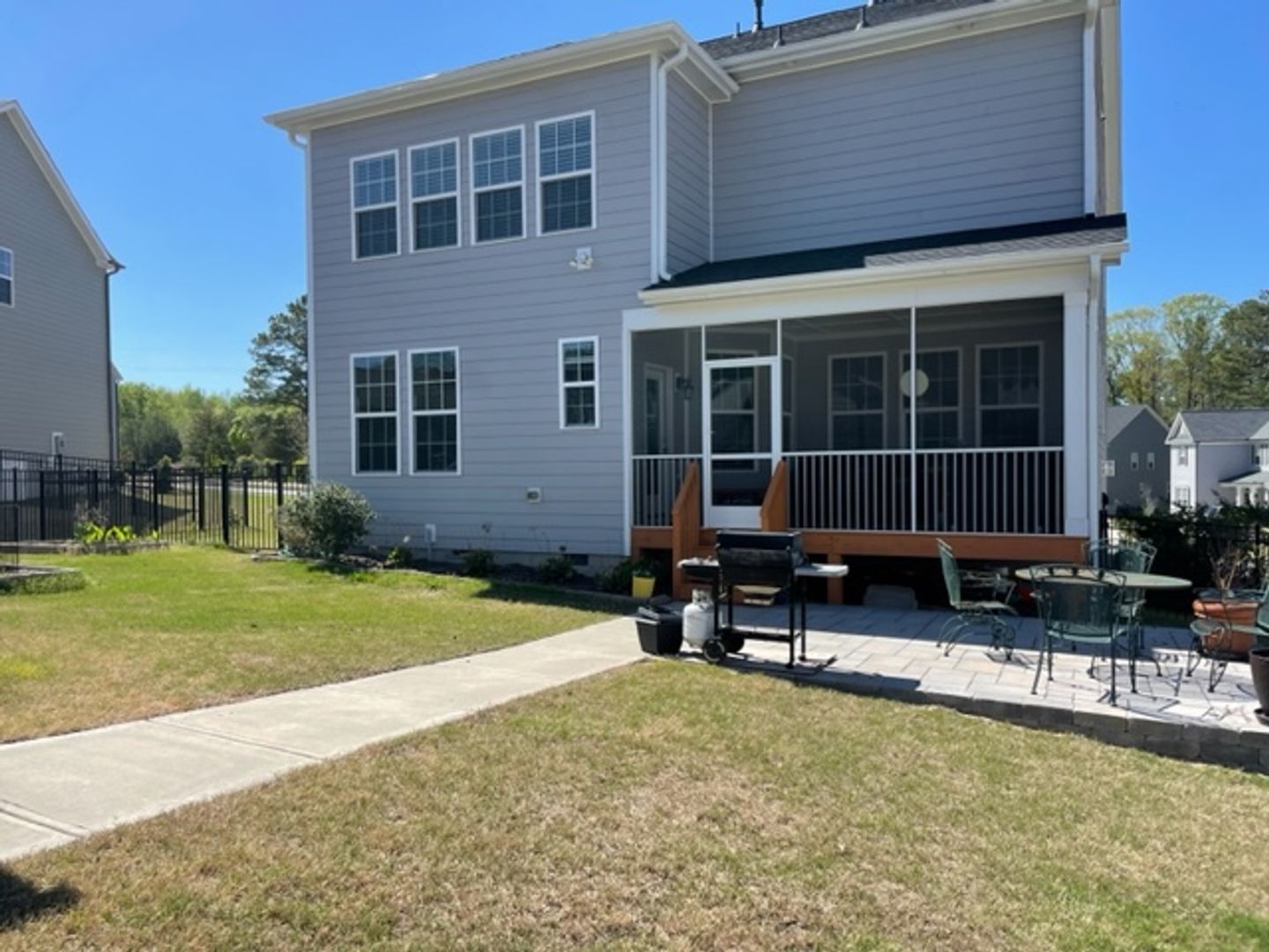 This floorplan will meet all of your needs with added features. Large open foyer, first-floor guest suite, study, formal dining & butler's pantry, gourmet kitchen with cooktop &wall oven, walk-in pantry & quartz countertop. Large family room with lots of windows for natural light. Kitchen w/large center island. Screened porch for relaxing outside along with an extended patio. Back alley dethatched garage. Fenced yard with raised planter beds. Short distance to pool, playground, clubhouse, dog park, and picnic pavilions.